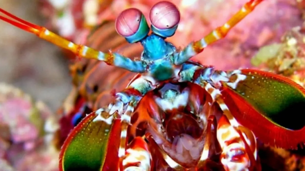 Essa espécie de camarão é um animal que vive em águas quentes e rasas, atingindo de 15 a 20 cm de comprimento. O mantis não possui 5, 7 ou 10 receptores diferentes, mas ele tem sim 16 receptores. O animal em questão enxerga todos os dias algo como uma explosão nuclear de cores, o que é impossível de se conceber pelos humanos.