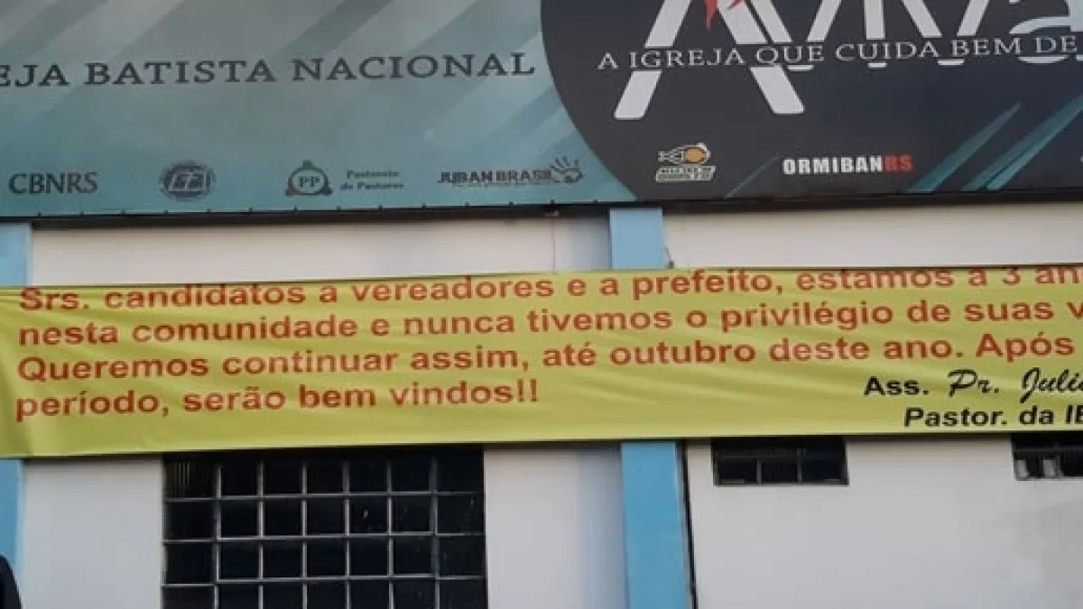 O caso aconteceu na cidade de Novo Hamburgo, no Rio Grande do Sul, onde o pastor Juliano Souto, líder da igreja Batista Nacional Avivar, colocou a inusitada faixa em frente ao templo dizendo que durante os três anos que a igreja está na comunidade, nunca receberam nenhuma visita dos políticos do município e que pretendem continuar assim até passar as eleições.