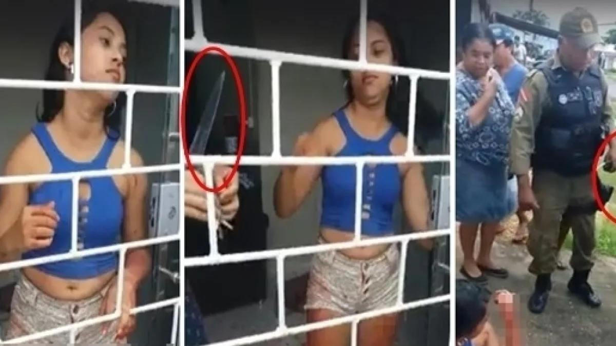 Muitos populares filmaram a suspeita, que estava com o braço sujo de sangue por conta de um ferimento a faca.