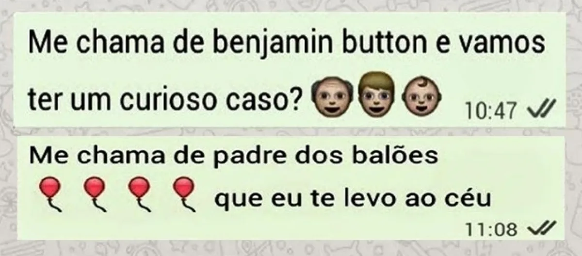 12) Linda, me chama de Benjamim Button e vamos juntos ter um curioso caso?