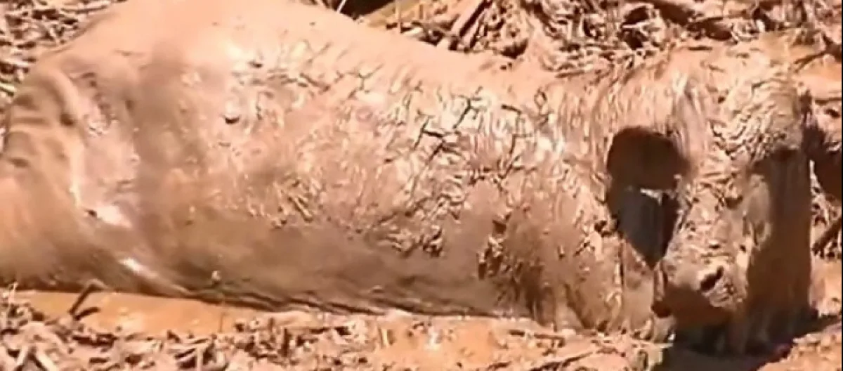 Segundo o Corpo de Bombeiros, ainda existem muitos animais ilhados, submersos e mortos ao longo do rastro de lama.