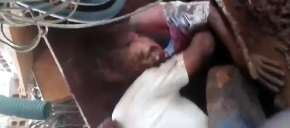“Aqui, por favor, me puxa... Tá me machucando...”, grita, aos prantos, a mulher em meio aos escombros. Completamente suja de lama, ela diz que sua perna está presa, enquanto um homem tenta puxá-la. A gravação é encerrada sem mostrar se a mulher conseguiu sair ou não. De acordo com a Rede Globo, o marido conseguiu retirar a mulher do local.