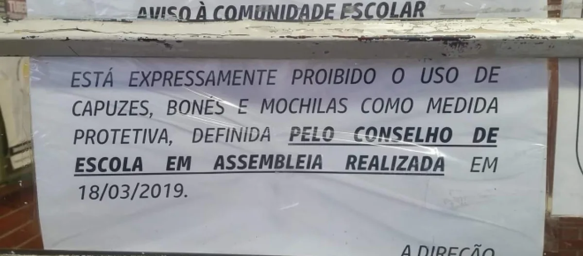 Uma norma estabelecida em uma escola estadual de Sorocaba, no interior de São Paulo, provocou indignação de pais e alunos. De acordo com uma determinação da Escola Estadual Professor Wilson Ramos Brandão, no Jardim Ouro Fino, os estudantes estão proibidos de entrarem no prédio usando bonés e capuzes. Até aí, nada de anormal, porém o que chama a atenção é que também está vetado o uso de mochilas.