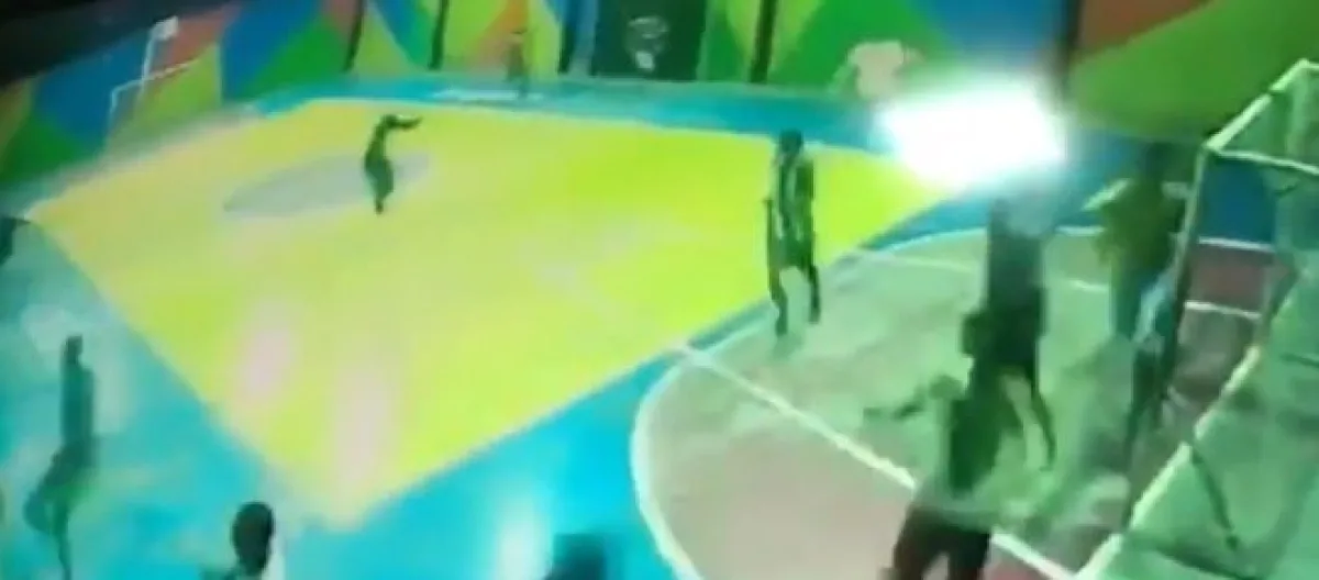 As imagens registraram o momento em que um grupo de pessoas, que estava vendo o jogo, começa a correr assim que ouviu-se o primeiro disparo. Na sequência surge a dupla armada que atira na direção de um dos jovens. Ele ainda tenta correr, mas é perseguido pelos invasores, que usavam capacetes e fugiram logo após a ação.