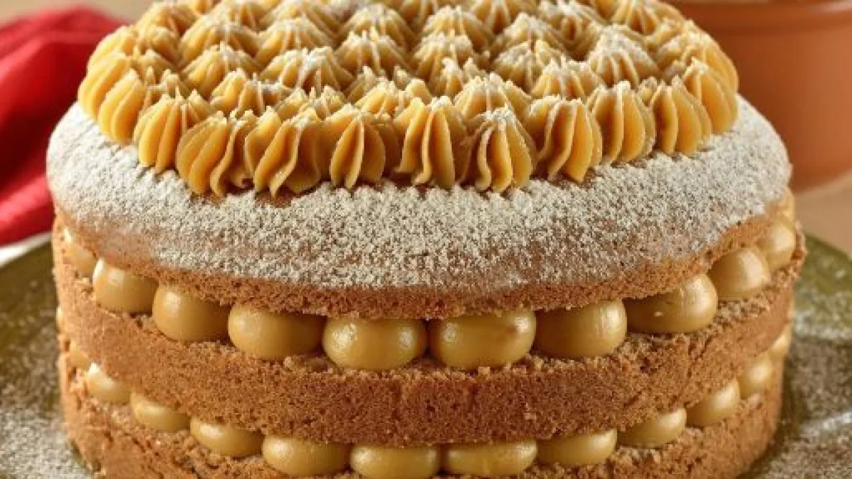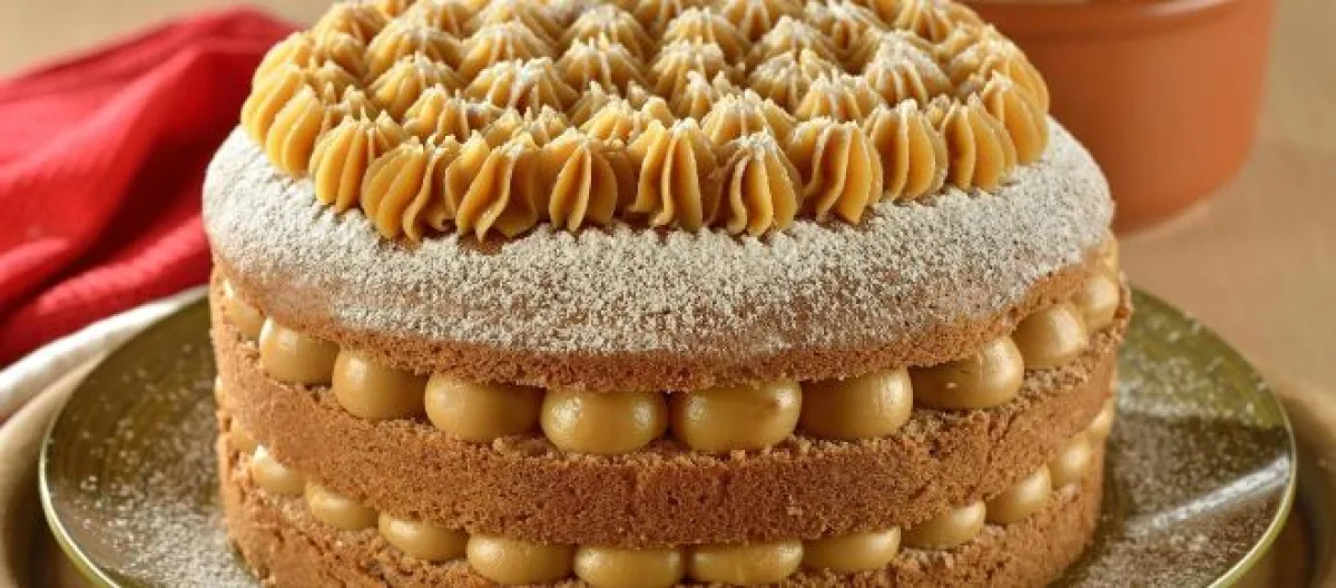 Retire o doce de leite da caixinha, use duas caixinhas do doce de leite caseiro para o recheio e reserve uma para a cobertura. Depois de rechear coloque a outra metade do bolo em cima.
