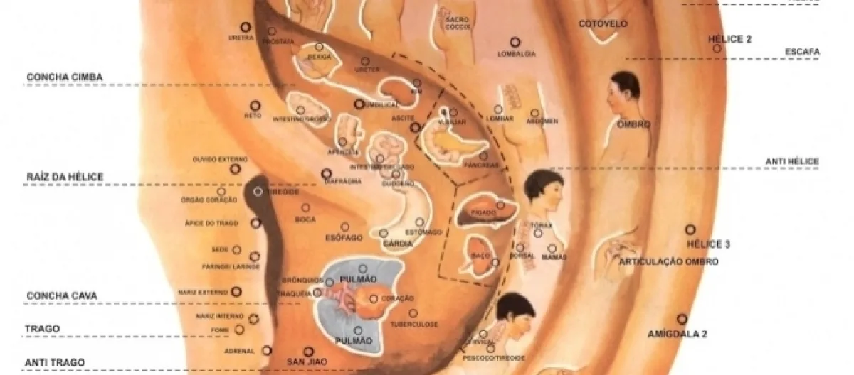 A auriculoterapia é uma acupuntura usada somente no pavilhão auricular (orelha) tendo aproximadamente 200 pontos para diagnosticar e tratar diversas disfunções orgânicas, emocionais, além do tratamento das doenças que afetam o organismo e dores em geral. Esta acupuntura pode ser feita com agulha, semente de mostarda, cristal de quartzo, esfera de prata ou ouro e vai depender do terapeuta o método escolhido.