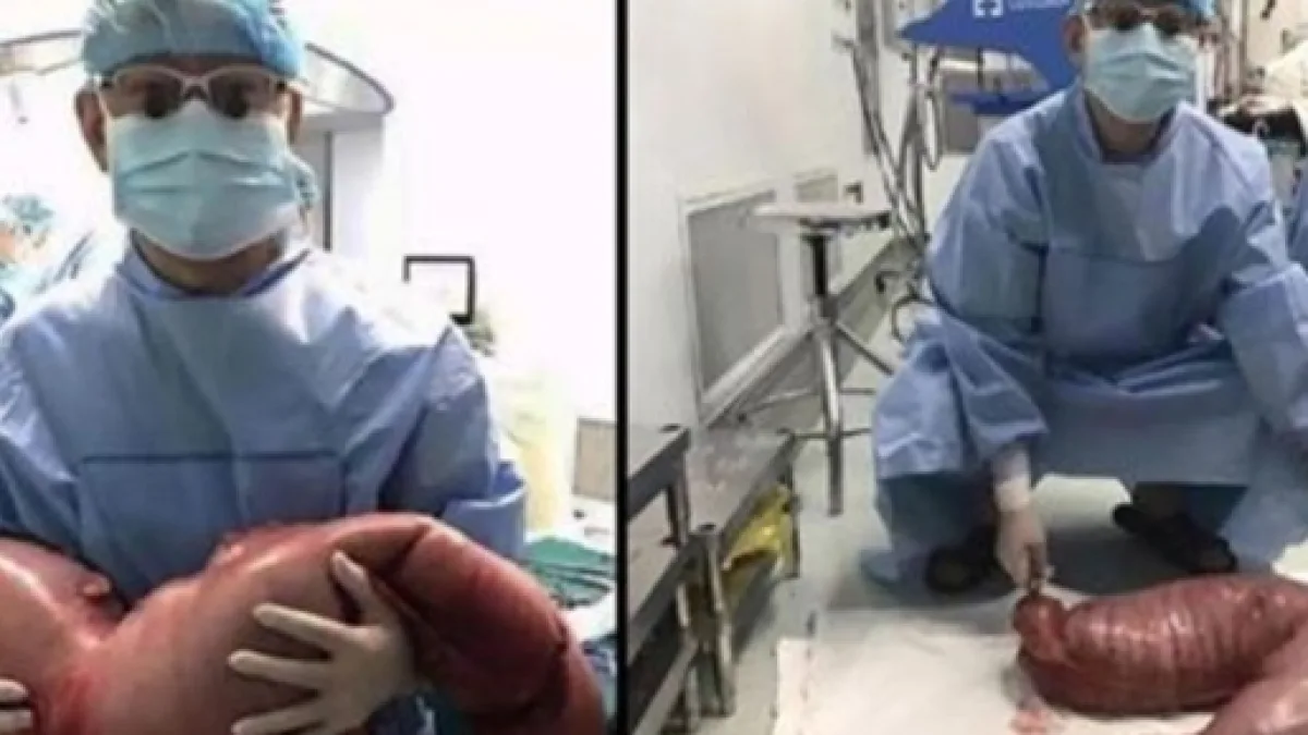 Logo após a cirurgia, a equipe médica costurou o intestino do paciente pelas duas extremidades, em seguida colocado em uma balança para pesar, conforme mostra a imagem. Para grande surpresa de todos, o intestino com as fezes pesava muito. Aproximadamente 30 kg, como já mencionando. Isso porque ele tinha fezes acumuladas no cólon, o que ocasionou o aumento na sua barriga, que cresceu de tal forma que parecia que estava grávido.