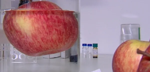 Dessa forma, para que tal experimento fosse conduzido, foi retirada um fatia bastante fina de uma maçã. Tal fatia, por sua vez, foi analisada com a ajuda de um aparelhos cujo uso, normalmente, está atrelado ao rastreio de células cancerígenas.