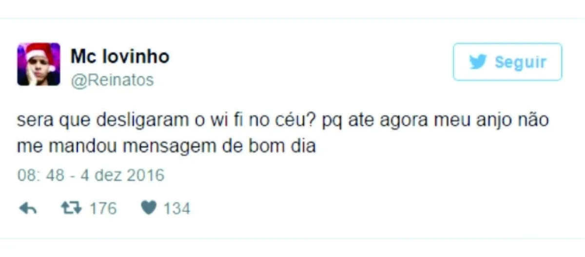 6 – Mais um que achou no Wi-Fi da padaria uma inspiração para lamentar a ausência na internet da pessoa desejada.