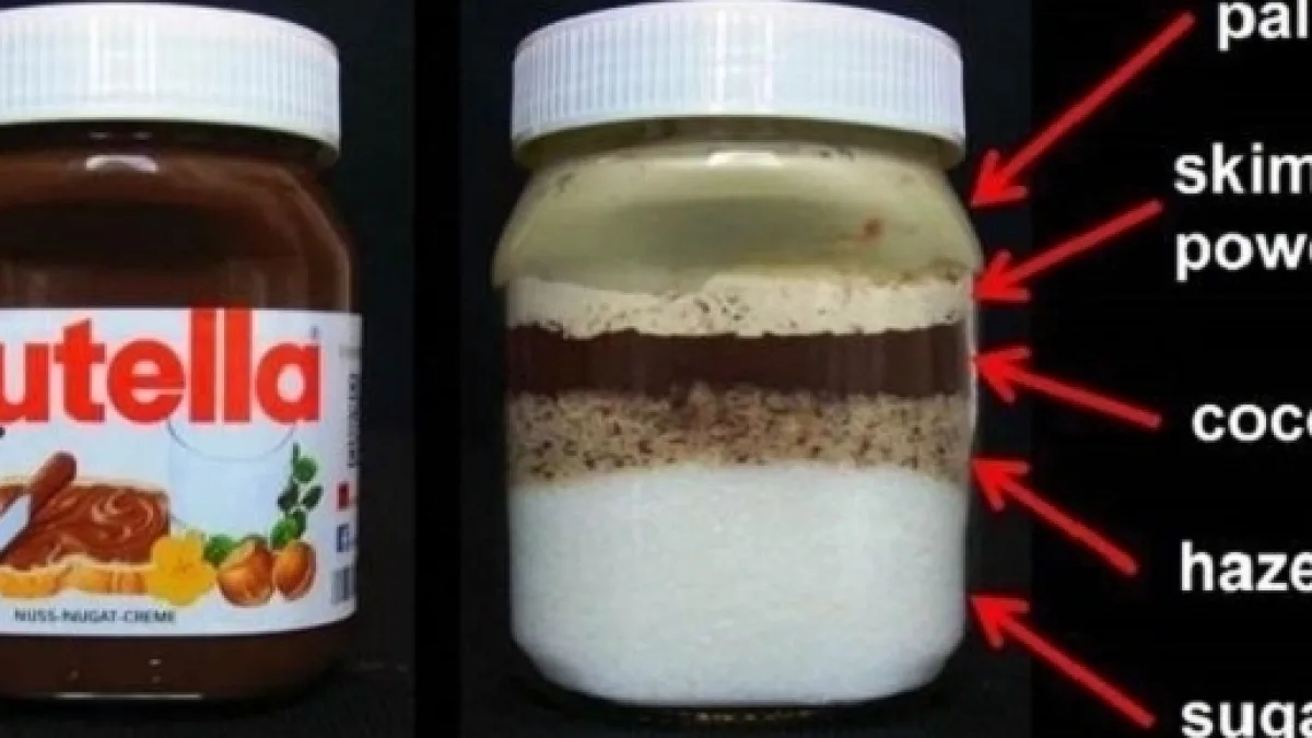 A primeira camada, que é o segundo maior ingrediente no frasco, é de óleo vegetal, que ocupa cerca de um quarto do frasco. Na semana passada, a Autoridade Europeia de Segurança Alimentar afirmou que o óleo vegetal é mais cancerígeno do que qualquer outro óleo. Ferrero, empresa que fabrica a Nutella, negou as reivindicações, dizendo que seu óleo é da mais alta qualidade e seguro para o consumo.