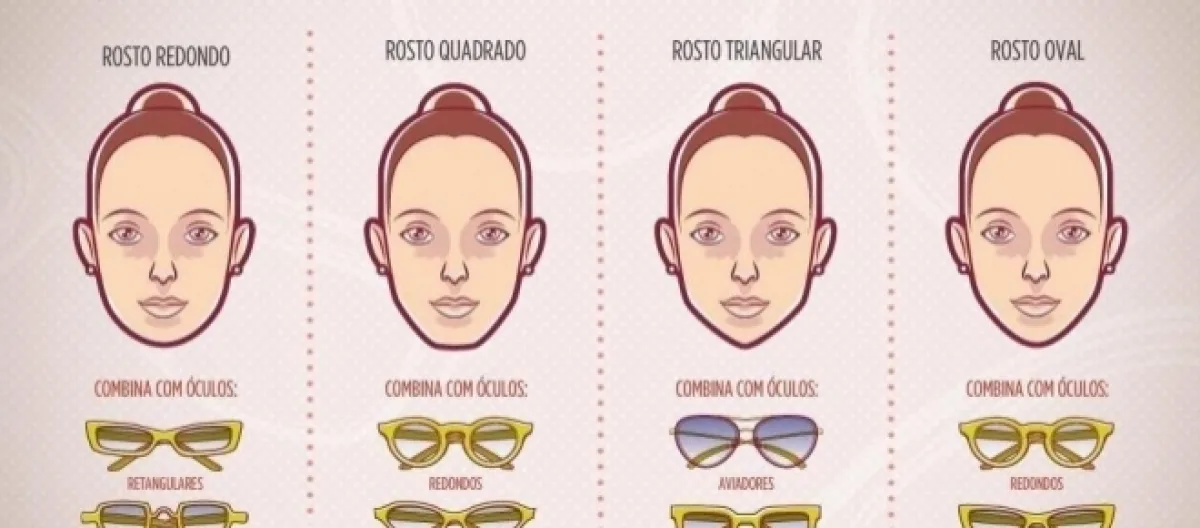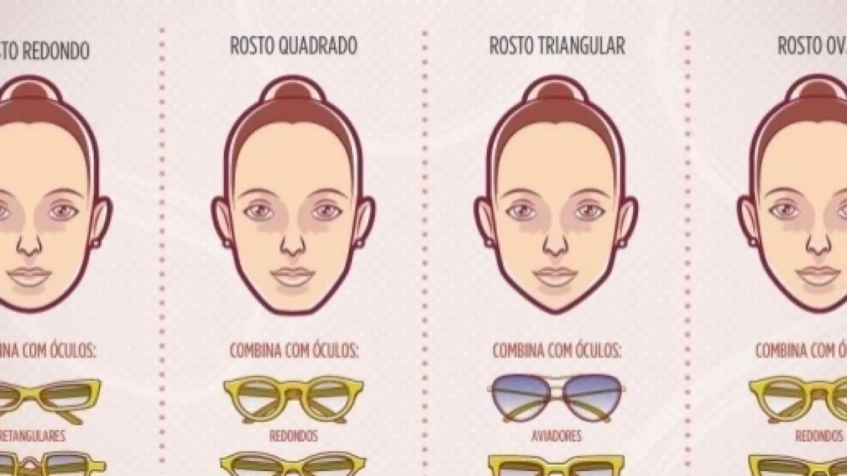 Os tipos de rosto estão divididos em: redondo, oval, oblongo, quadrado, retangular triangular e triangular invertido. Veja abaixo o significado de cada formato: