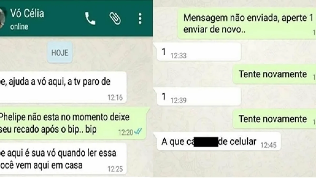 Nessa conversa, o neto resolveu fazer uma trollagem diferente com sua avó, através do WhatsApp. Ele simulou uma mensagem automática gerada pelo aplicativo e sua avó acabou acreditando e interagindo de acordo com a situação.