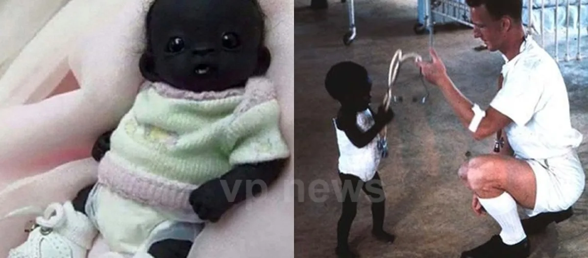 Esses sites sensacionalistas afirmam que, supostamente, a segunda foto traria o bebê mais escuro do mundo hoje em dia.