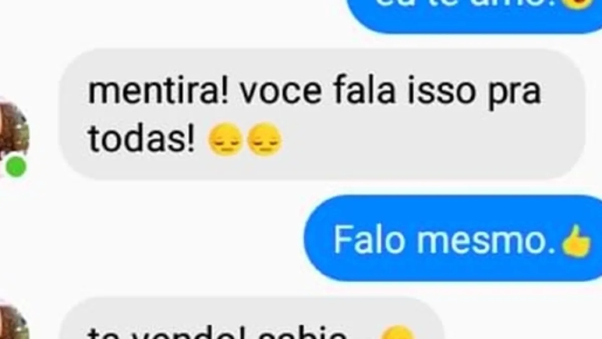 A mulher, porém, não se deu por satisfeita com a frase do rapaz e retrucou com certa desconfiança. “Mentira! Você diz isso para todas”, falou e utilizou o emoji com semblante triste.