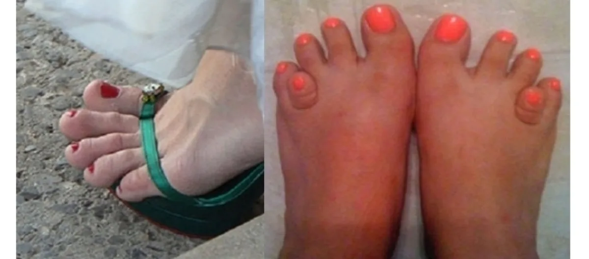 Observem que ao lado dos polegares, o osso acabou ganhando um contorno maior do que o normal. Como resultado, o visual feminino acabou sendo prejudicado.