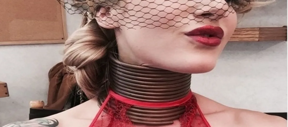 E depois de muita pesquisa, conhecendo os costumes das mulheres girafas e todo o procedimento que elas passam, ela decidiu colocar os aros de latão. E, por 5 anos ela usou e foi aumentando o número de unidades na tentativa de fazer com que a mandíbula aumenta-se o máximo que podia.