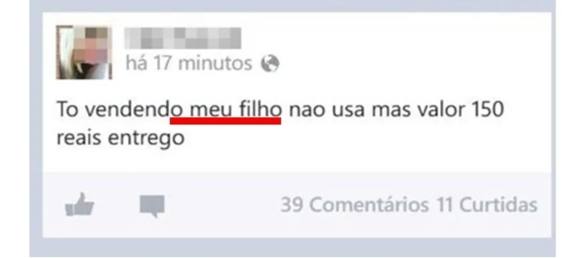 5 – “To vendendo meu filho não usa mais valor 150 reais entrego”, a falta da vírgula nesse caso, acabou dando a entender que, na verdade, essa mulher está vendendo seu filho a um preço de R$ 150 e ainda faz a entrega na casa do cliente.