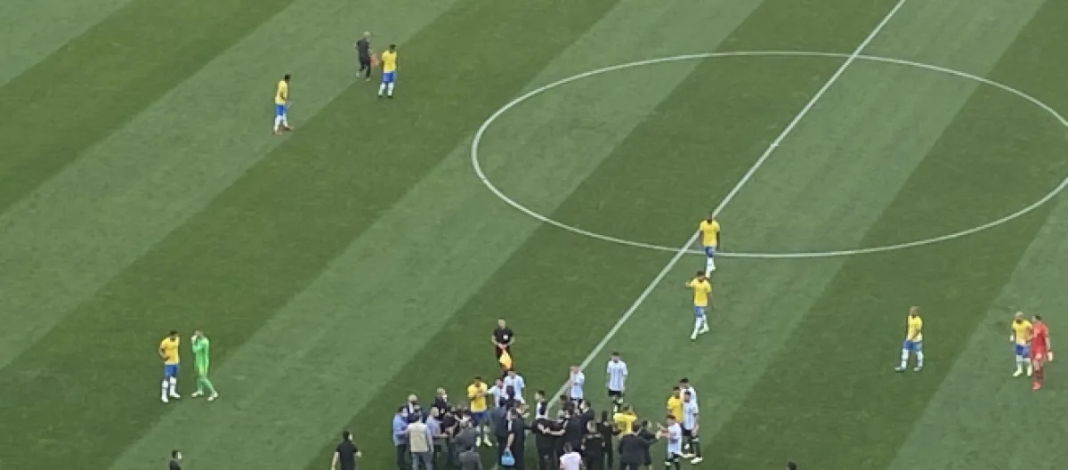 Agentes da Agência Nacional de Vigilância Sanitária (Anvisa) entraram no gramado da Neo Química Arena e interromperam a partida entre Brasil e Argentina pelas Eliminatórias da Copa do Mundo. A intenção foi impedir que os quatro atletas argentinos que vieram da Inglaterra e não cumpriram quarentena jogassem contra a seleção brasileira no domingo (5). Diante da intervenção com o jogo em andamento, a seleção argentina abandonou o gramado e se dirigiu para o vestiário.