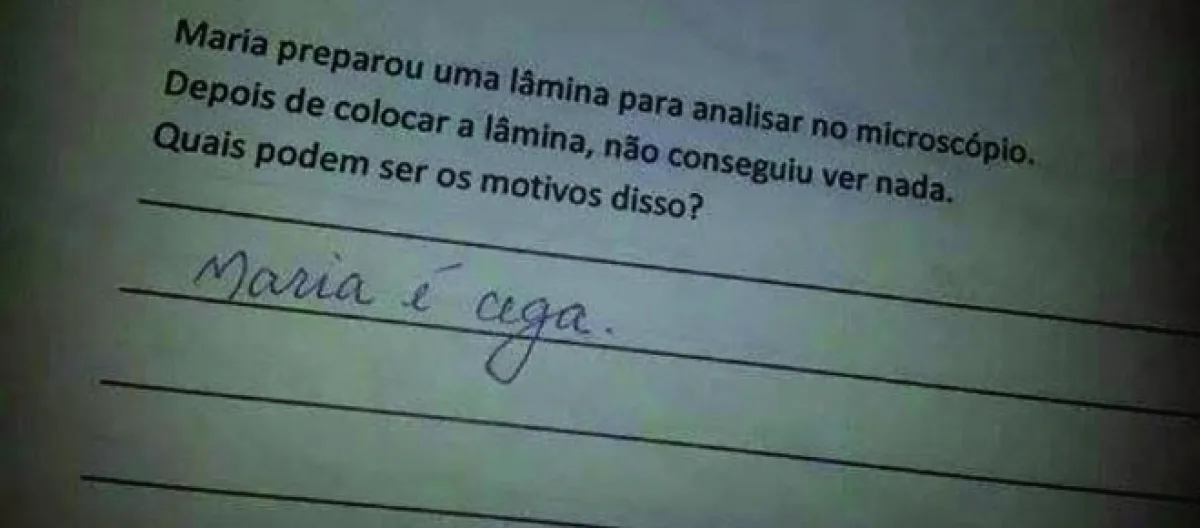 Abaixo, separamos e apresentamos 10 dessas situações na prática, que apesar de tudo vão te fazer dar muitas risadas com as divertidas e criativas respostas de alunos.