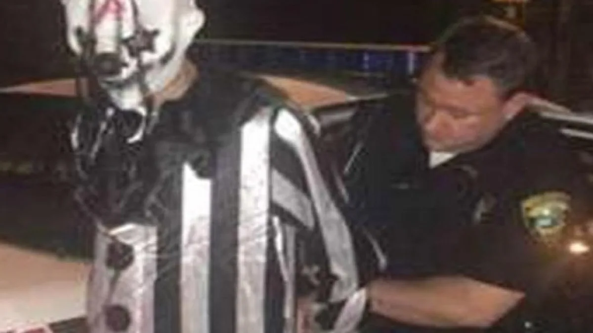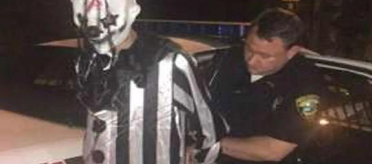 As fotos tiradas pelos agentes mostram Martin trajando os típicos macacões desses profissionais circenses. No entanto, a máscara usada pelo infrator remete aos filmes de terror do tipo It – Uma Obra Prima do Medo (1990).