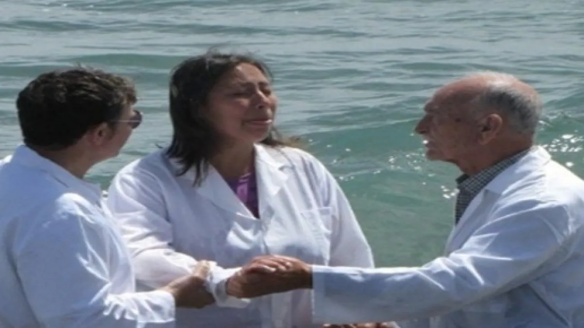 A mulher foi levada as águas do mar, onde as ondas estavam muito fortes, com ajuda dos representantes de batismo da igreja e foi orientada por eles a orar e se entregar para Deus, Enza começou a orar e eles a deitaram dentro do mar.