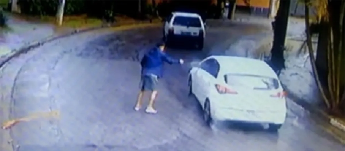 Ele tenta deter o veículo da vítima, que chega logo atrás. A dentista percebe a movimentação e mesmo vendo a arma apontada para a sua direção, acelera e segue em fuga.