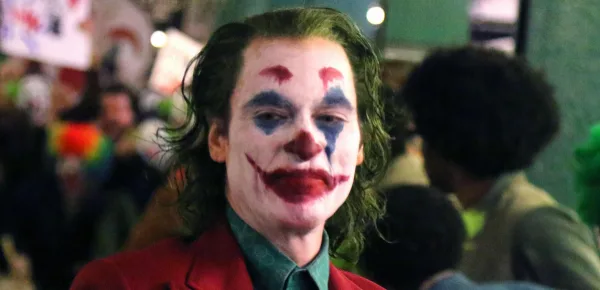 O espectador encontra no personagem, brilhantemente interpretado por Joaquin Phoenix, um homem atormentado que acaba perdendo a luta interna que travava contra sua loucura, e somente no ato final é que o Coringa realmente aparece com toda a sua crueldade.