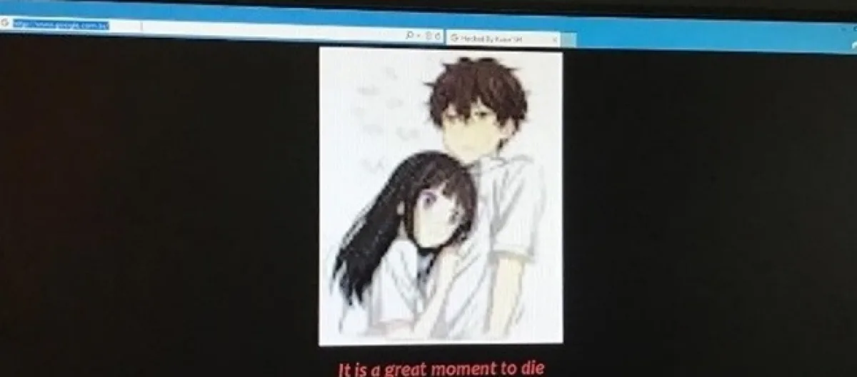 Na tarde desta terça-feira (3), os usuários brasileiros do Google foram surpreendidos ao tentar acessar a página do buscador. Ao invés de encontrarem o bem conhecido logotipo da empresa com sede em Mountain View, deparam-se com uma imagem estranha e a mensagem de um hacker dizendo "é um bom momento para morrer".