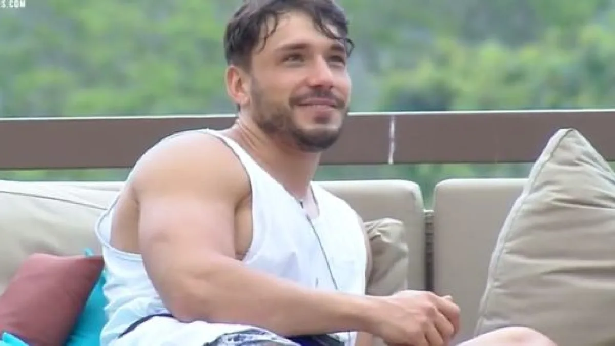 Quando o modelo entrou na sala da sede, a câmera do 24 horas mudou para o quarto, onde estavam Viny e Netto, que estão na roça.